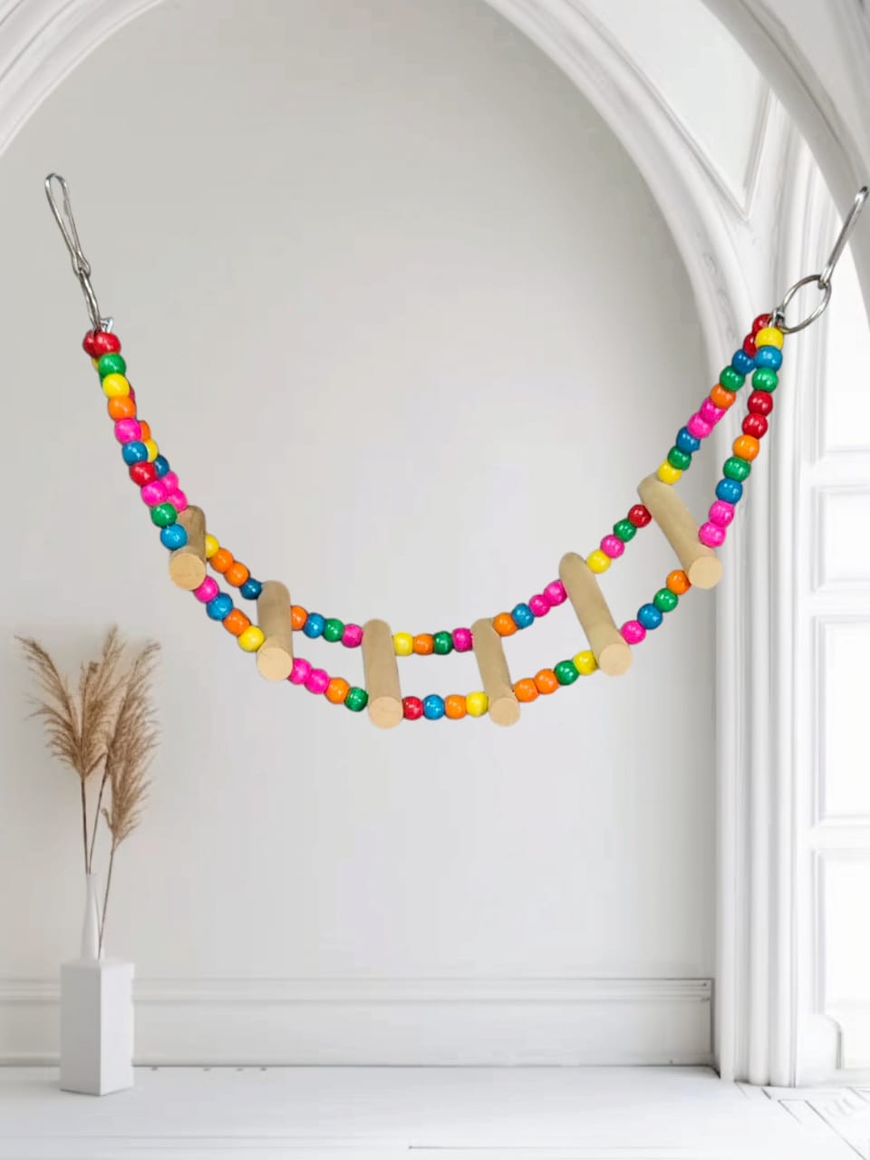 Colorful Wooden Bead Rope Ladder Bridge for Birds & Small Pets